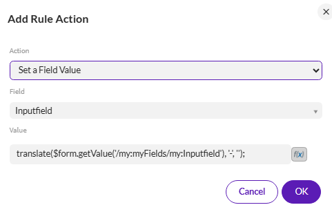 $form.setValue('/my:myFields/my:ISS/my:HelperPRT',let clean = yourString.replace(/[-.]/g, ''));
