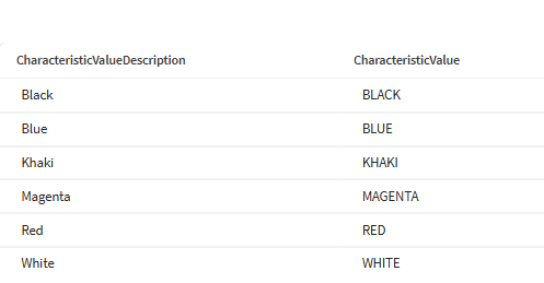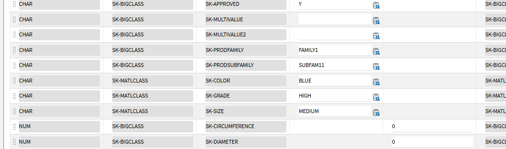 Here is an example in a demo with product update that has multiple classes and characteristics - and only I show which values can be selected - if there are values to select