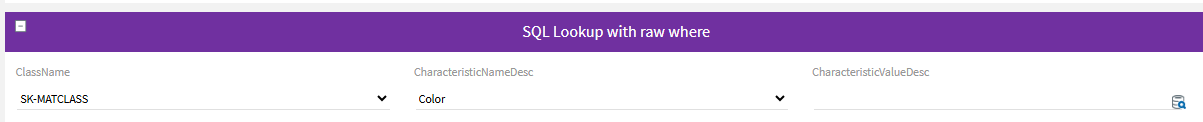 What I'm doing above is querying a table that has class name, characteristic description and then want to use the lookup control pop-up to list the values to select. You can use as many filters as you like, and it works well in a table.