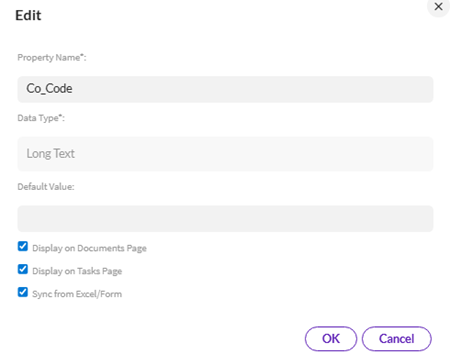 · Optionally check Display on Tasks page – this will display the promoted property name and value in the Tasks page if you open it from the Browser or from the Excel add-in.