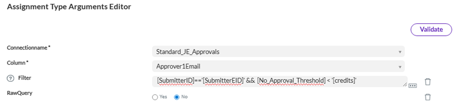 Both SubmitterID and credits are fields that were passed into the solution from the Excel file. In this case they are used to filter a list of approvers in a data connection.