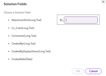 · You will see all of the default solution fields, but also your custom fields – you can search to find it, select it and click OK. Build the rest of your condition based on that value or set of values